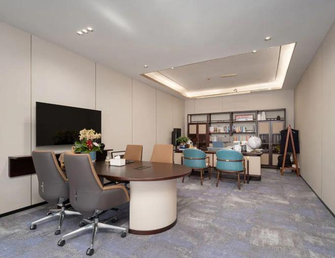 董事长办公室,延续现代简约的主基调,融入中式美学的精神内核,打造一个兼具高效办公,商务会客,高层会议的复合型空间。