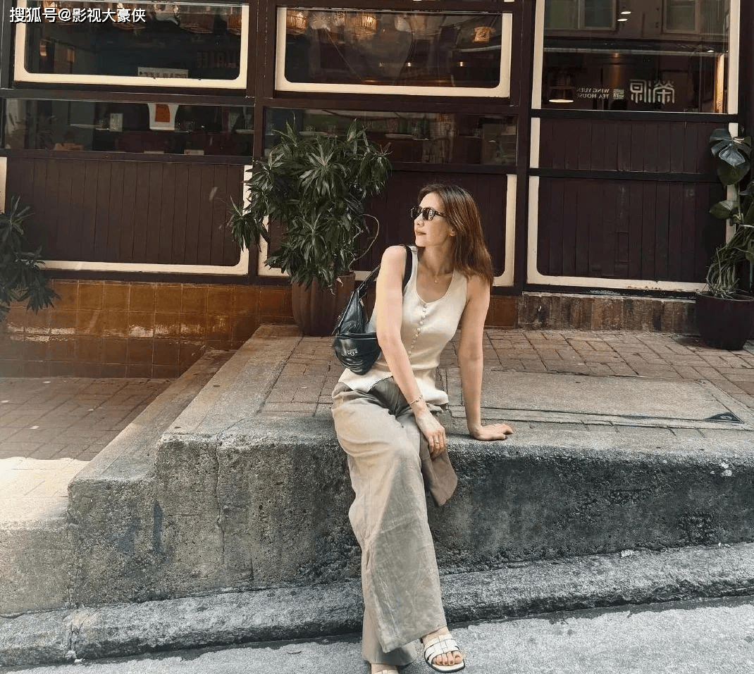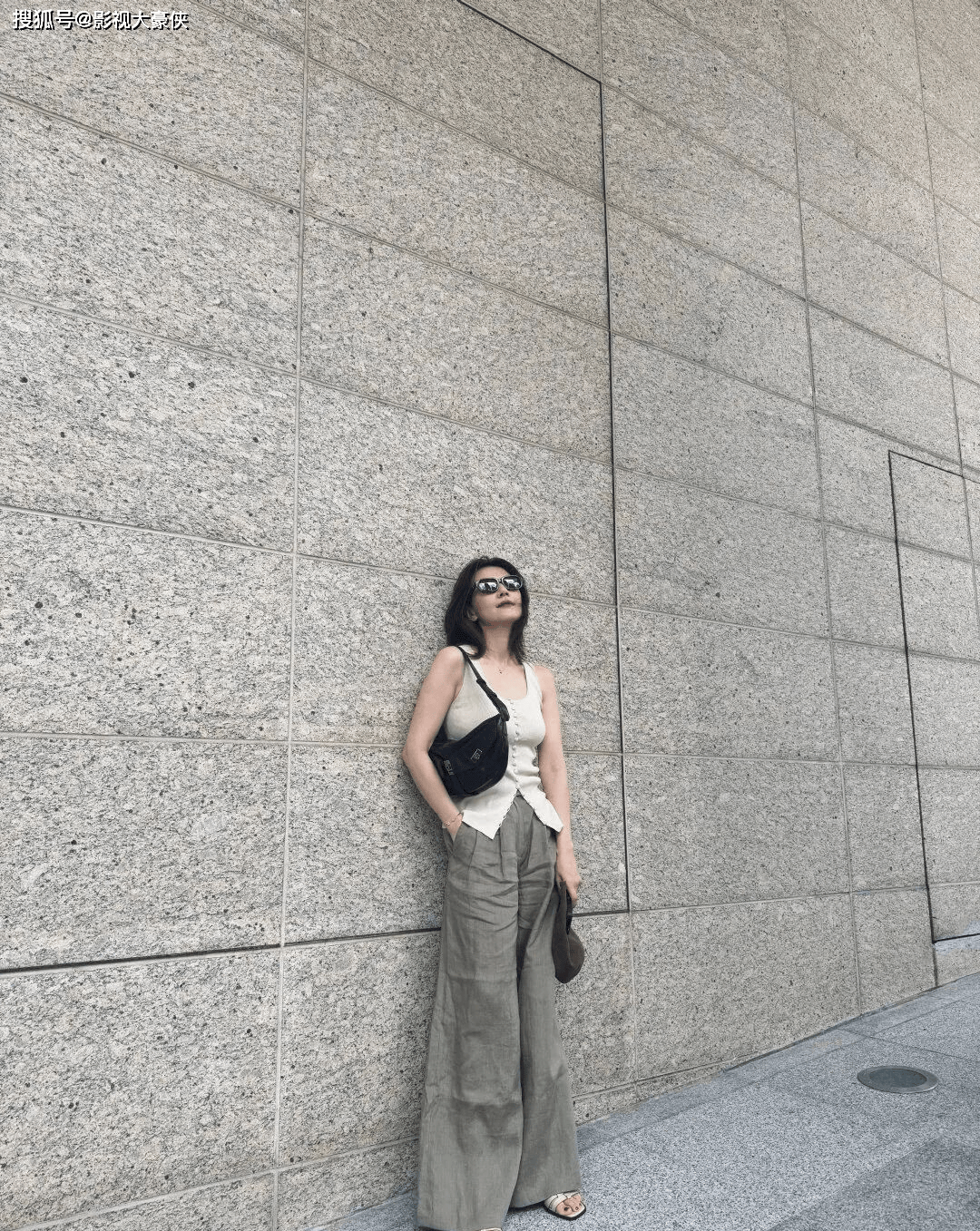 她身着一件简约的修身无袖上衣,搭配一条宽松的拖地长裤。此般穿搭,不仅尽显时尚之感,更流露出一种独特的随性与松弛。她的状态仿若被岁月格外眷顾,着实冻龄。