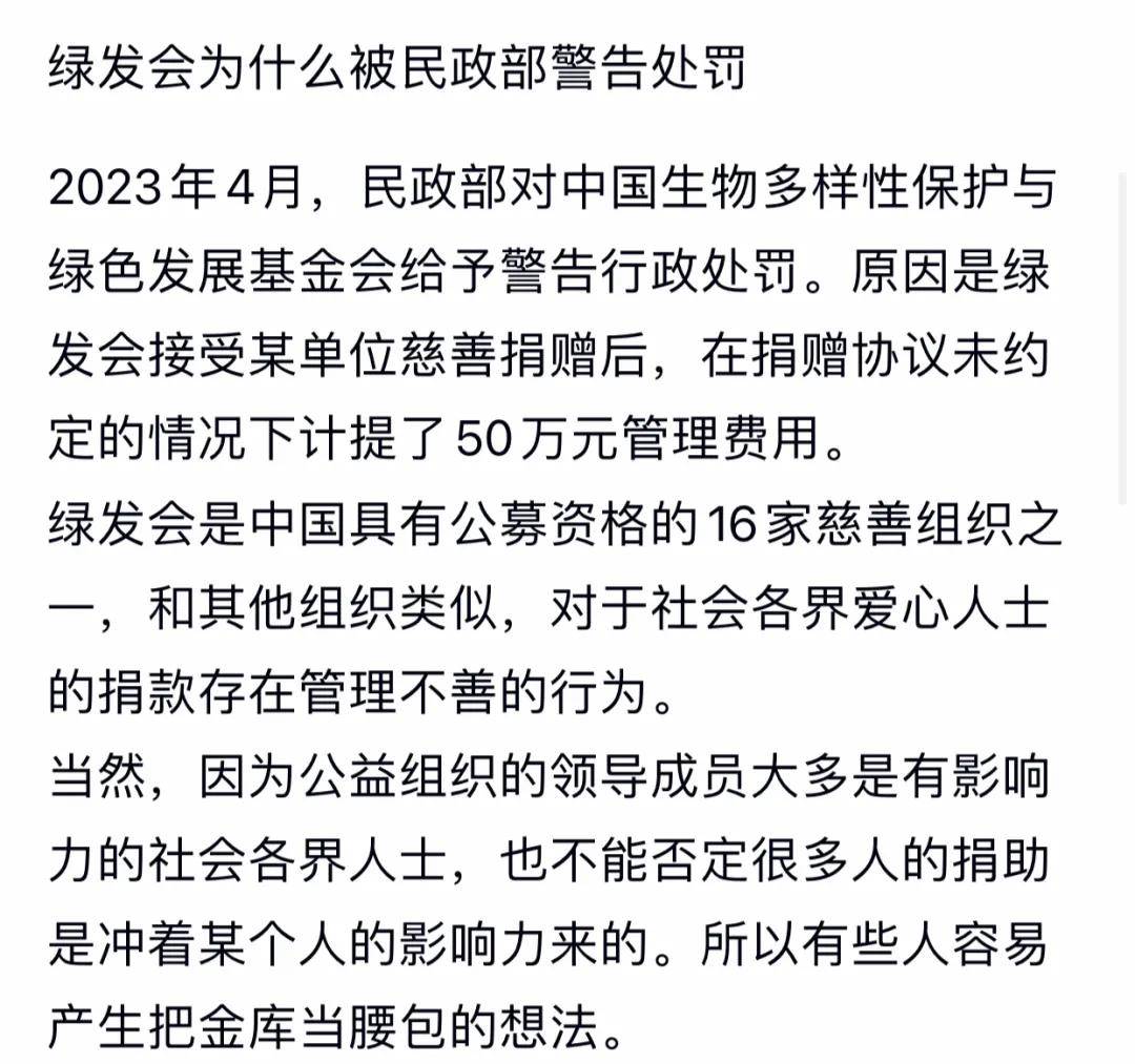 绿发会作为一个经国务院批准设立的全国性公益基金组织之一,在资源和人脉方面有着不可忽视的影响力。