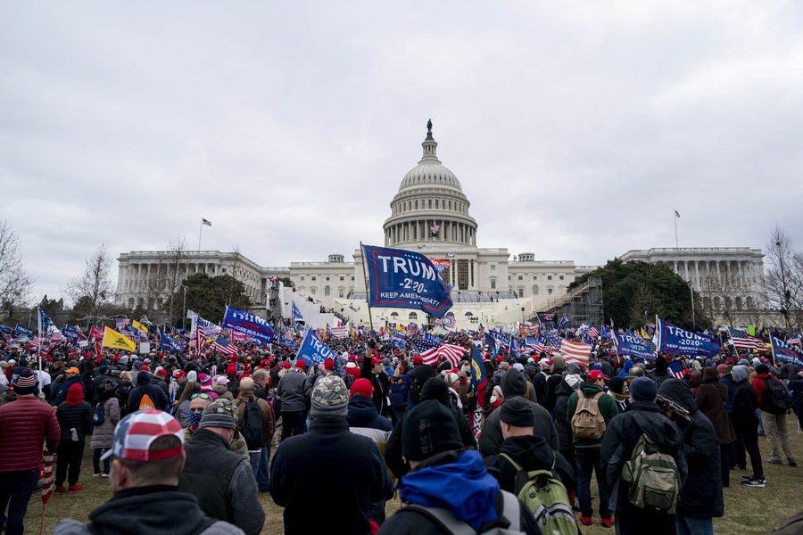 2021年1月6日,在美国首都华盛顿,时任美国总统特朗普的支持者举行。(新华社记者刘杰摄)
