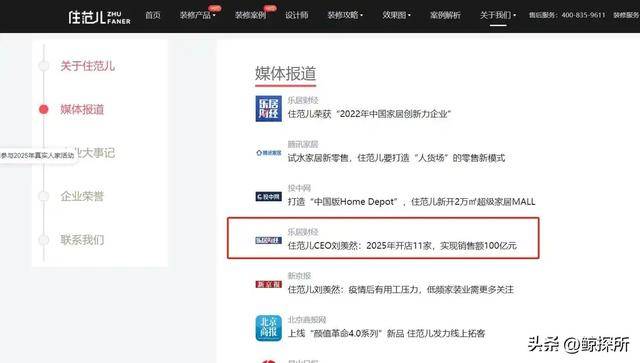 在住范儿的官网上,还有着他们的一些媒体报道,其中有一条是非常“显眼”的,他们的CEO刘羡然曾定下的2025年的目标,开店11家,销售额100亿。