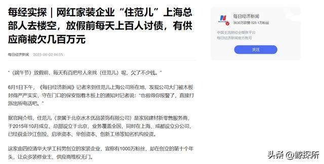 工科男创办的家装企业,信誉度应该是拉满的,结果在创办的第十个年头,总部人去楼空,供应商维权无门。