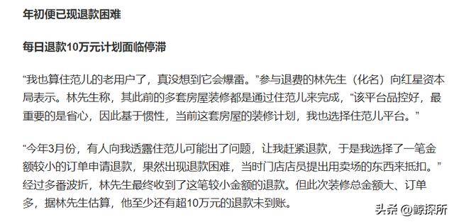 可让他没想到的是,在三月份的时候,就已经有人提前跟林先生透露,说住范儿可能有问题了,让他申请退款。