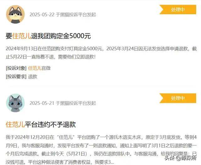 自从今年年初开始,就已经陆续有消费者反映了住范儿的问题,其中反映最多的,就是在平台下单的商品不能够正常发货,退款也并不顺利。